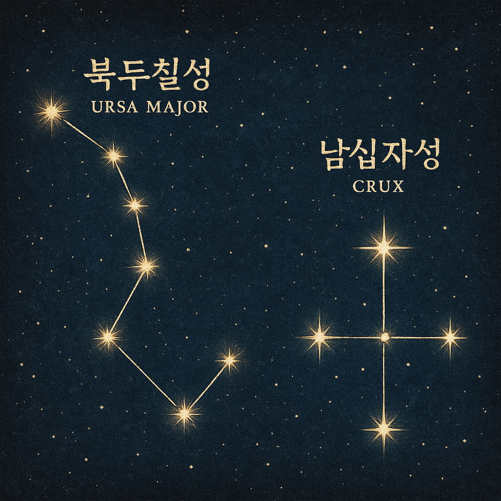 밤하늘을 올려다보면 누구나 한 번쯤 눈에 담는 별자리가 있습니다. 북반구에서는 북두칠성이, 남반구에서는 남십자성이 대표적입니다. 이 두 별자리는 단지 별의 배열을 넘어서 고대부터 인간의 삶과 문화 속에서 중요한 위치를 차지해왔습니다. 방향을 알려주는 자연의 나침반이자, 신화와 종교, 문학 속의 상징으로 자리 잡아 온 이 별자리들은 시간과 공간을 초월한 신비로움을 간직하고 있습니다. 이번 글에서는 북두칠성과 남십자성의 천문학적 의미, 문화적 배경, 신화, 그리고 이들이 인간에게 어떤 영향을 주었는지를 살펴보며, 밤하늘 속 숨은 이야기를 함께 만나보겠습니다.